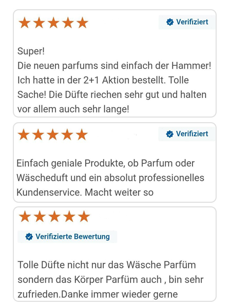 Unser Fokus liegt konsequent auf höchster Qualität. Bei der Entwicklung unserer Parfüms legen wir großen Wert auf intensive Duftwirkung und langanhaltende Haltbarkeit. Ergänzt wird dies durch eine Lieferung innerhalb von 24 Stunden und einen schnellen, kundenorientierten Service.