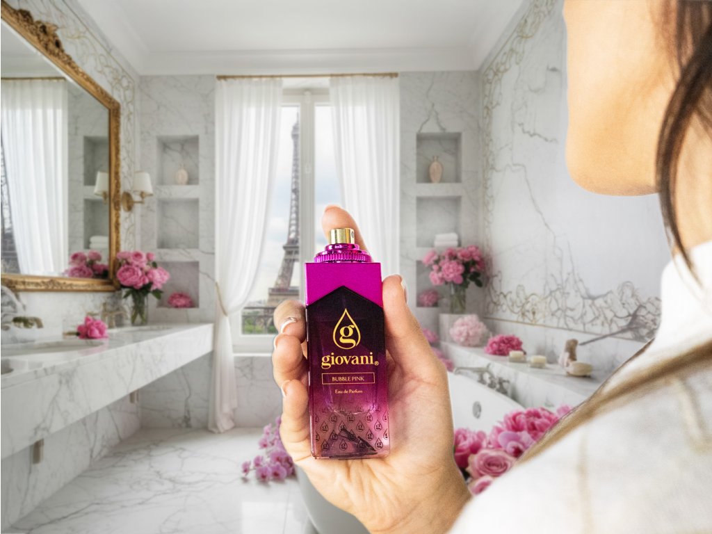 Verspielt süß und unwiderstehlich feminin. Das Parfum Giovani® BUBBLE PINK entfaltet sich wie eine rosa Wolke aus Pfirsich und Orange mit einem Hauch Aldehyde. Im Herzen blüht exotisches Ylang-Ylang, das sanft in eine warme Basis aus Vanille und feinem Moschus übergeht. Dieser süße Parfum-Duft entführt Sie in eine sorgenfreie Welt.