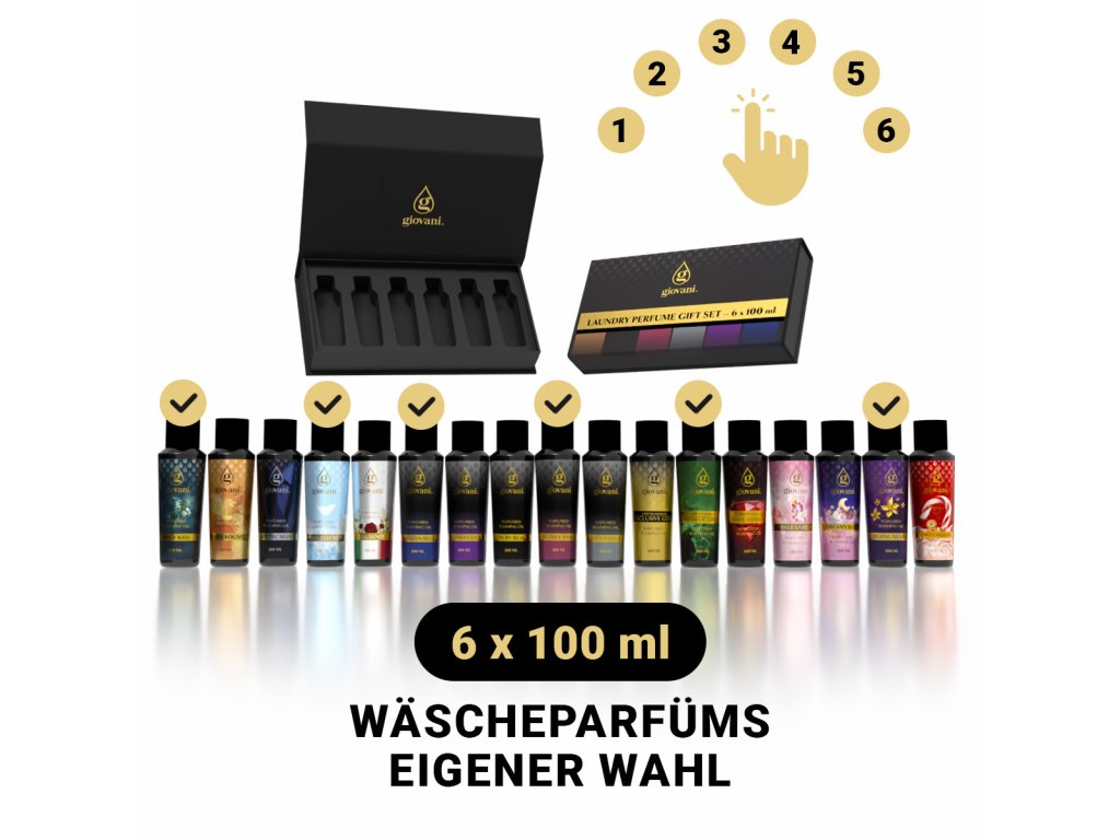 Giovani® - der DuftspezialistGiovani® ist eine exklusive Marke, die sich auf Düfte konzentriert und spezialisiert hat. Wir von Giovani® kreieren unsere Produkte immer nach den Düften der weltbesten Parfümmarken und lassen uns entweder von deren Düften inspirieren oder wir kreieren Düfte ganz nach deren Vorbild. Giovani® Wäscheparfüms sind unser Hauptprodukt. Bei der Entwicklung achten wir stets auf die höchstmögliche Qualität, Intensität und Haltbarkeit der Düfte. Wir haben das Sortiment so gestaltet, dass jeder ein Parfüm nach seinem Geschmack finden kann. Unsere Marke bietet süße, frische und würzige Düfte an. |