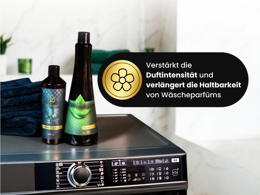 AnwendungGeben Sie das Wäschegel in das dafür vorgesehene Fach Ihrer Waschmaschine. Verwenden Sie 10 ml Konzentrat für jeweils 4 kg Wäsche. Eine 1 000-ml-Flasche reicht für bis zu 100 Waschgänge. Das Wäschegel ist nicht für Wolle und Seide geeignet. Diese Materialien erfordern eine spezielle Pflege ohne Enzyme und starkes Schleudern. Kombinieren Sie das Giovani® FRESH Wäschegel mit unseren luxuriösen frischen und würzigen Wäscheparfüms. Der Duft des Gels überdeckt ihre Intensität nicht, sondern unterstützt und betont sie. |